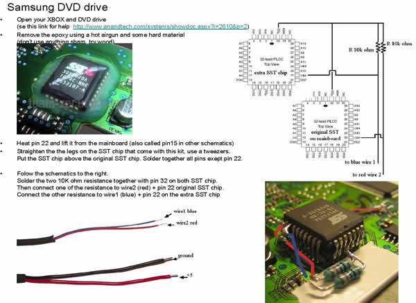 For Hitachi l LG DVD usethe same ideaas Samsung. The differenceis that you must usecablesto connectthe twochips, and cut onetrack.