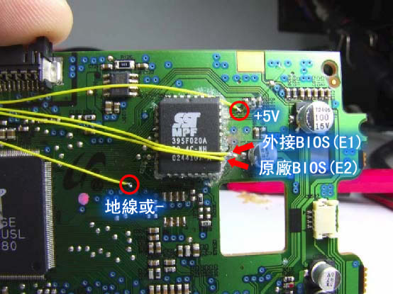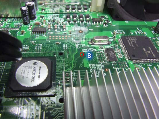 XBOX360 主機板上也要拉二條線到黑皮360 改機晶片上