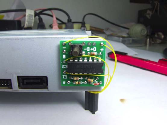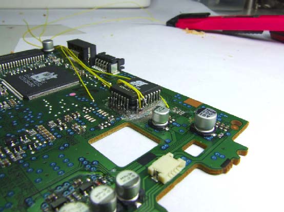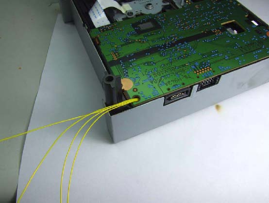 將光碟機主機板拉出來的四條線分別焊上黑皮360 改機晶片上