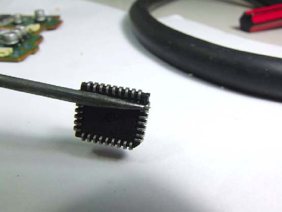 破解韌體燒入到IC 之後我們將IC 的腳都拉直